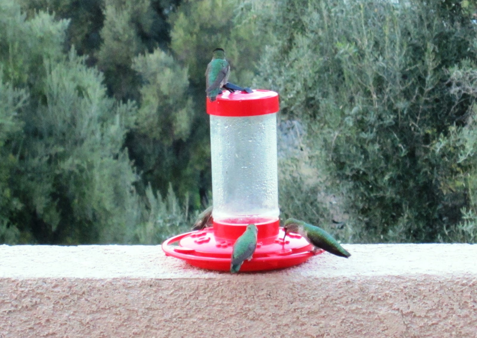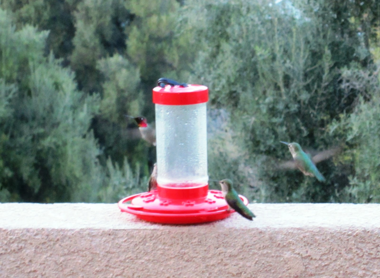 He guards it like he owns it. And yet if you could ask the little feller where this motherlode of methctar comes from and how is it that it magically refills every day, he’d probably turn to you in all his scarlet-necked plumage and say, “I don’t care about that. It’s mine. Off you go!”
