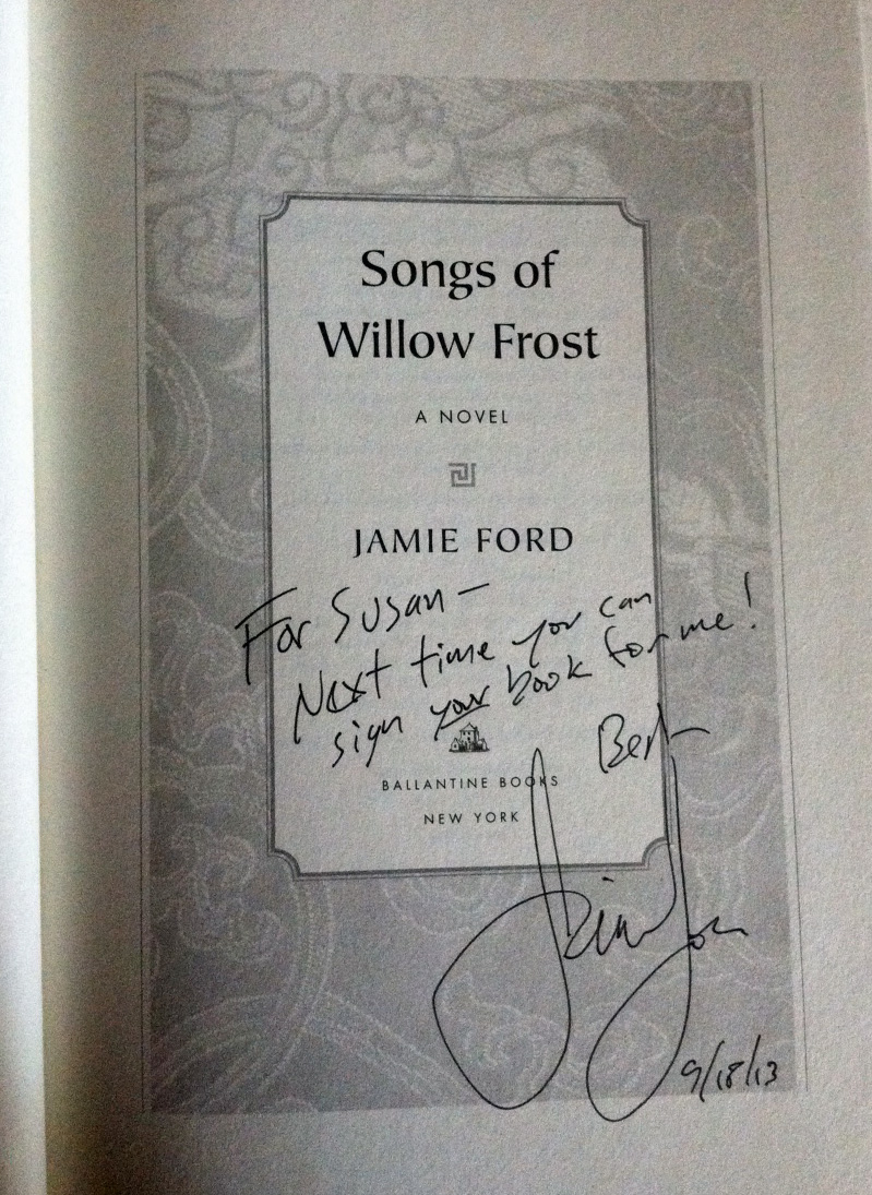 Ever since finishing The Hotel on the Corner of Bitter and Sweet by Jamie Ford a few years back, I had been one of those standing anxiously in line for his next one. (If you’ve not read Hotel, you really need to examine your To Be Read priorities!) So of course I was very happy to hear that Songs Of Willow Frost was coming our way in 2013 and not only that, but also that Jamie Ford would be at Warwick’s Books in San Diego’s beautiful gem La Jolla, to speak about it.