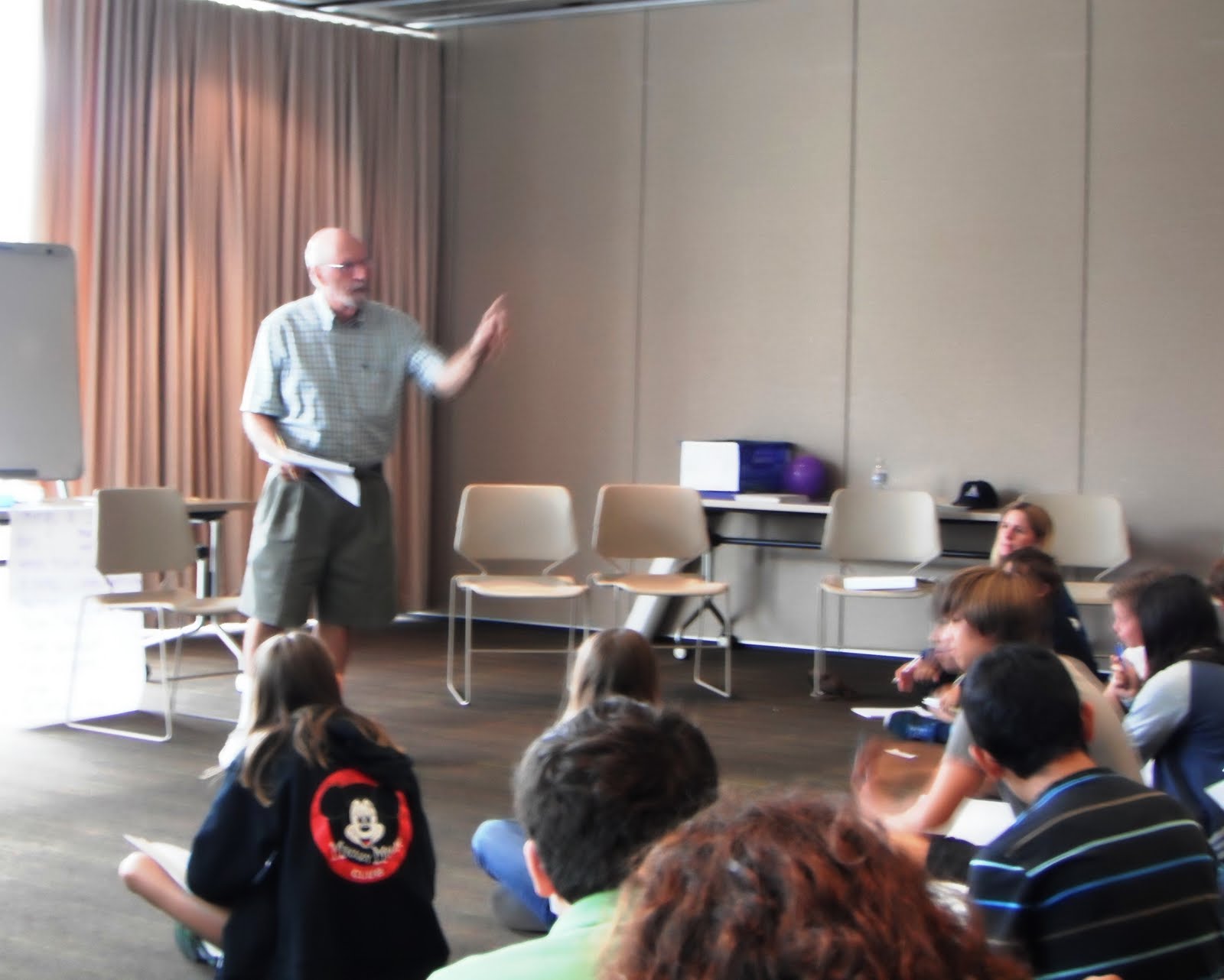 Spent the better part of the day at UCSD yesterday, as a guest of my retired high school English teacher, Frank Barone, watching as he awakened the imaginations of daycampers at writing camp. I have some pictures to share with you and an awesome quote from one of his students, but first things first, we need to announce the winner of Broken Wings by Carla Stewart. Thanks to random.org, the lucky recipient is Stephany! Dear Stephany, email me at susan [at] susanlmeissner [dot] com so we chat about a mailing address. Thanks to all who commented. If you didn’t win, do get your hands on the book. Carla is a gifted storyteller. And now for the pictures.