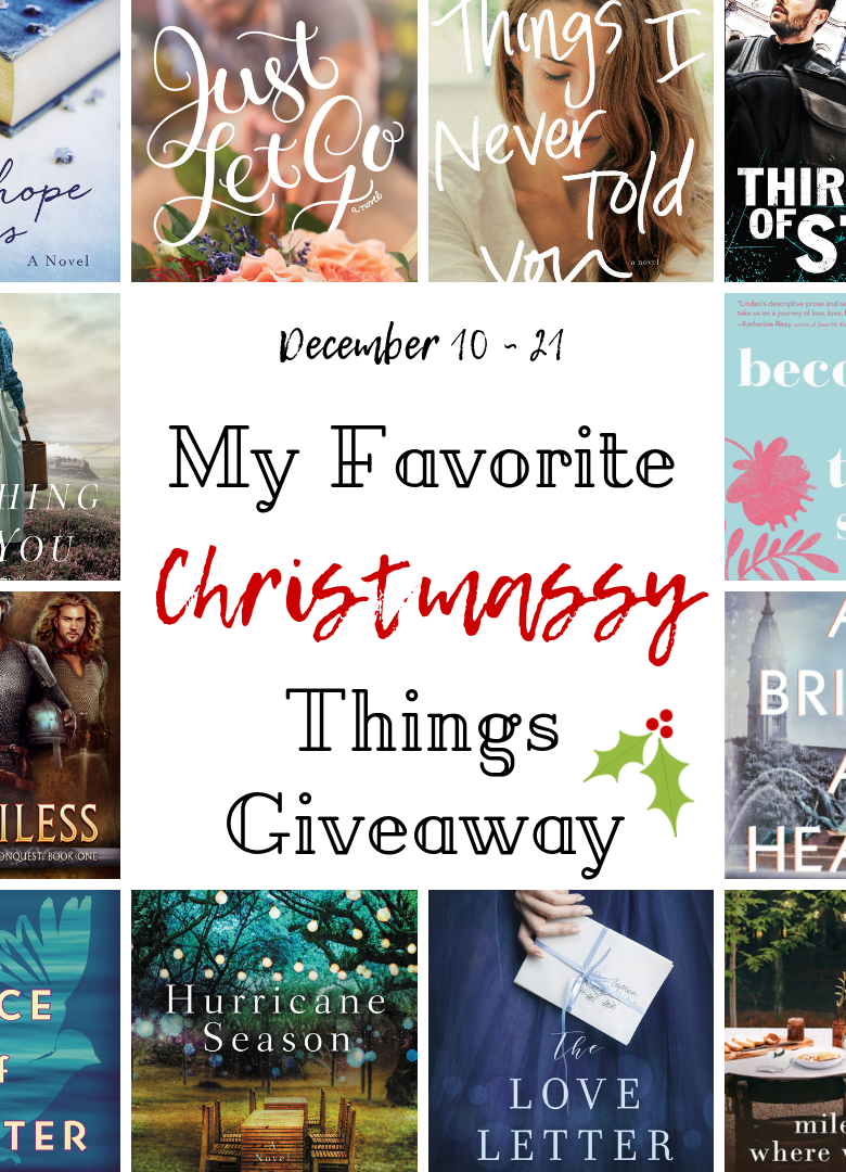 I’m pleased to be part of a dozen authors who’ve gotten together through time and space to present My Favorite Christmassy Things! My post today is the eleventh of 12. We’ve got some grand prizes that you can get in on and LOTS of individual giveaways (I have a mini-giveaway of my own today – read to the end to see what it is). But the grand prize is big ol’ box of books and there are two smaller grand prizes to be won. I have a list of all the other participating authors at the end of my post here so that you can get in on the big good stuff and the individual giveaways. I was given the prompt