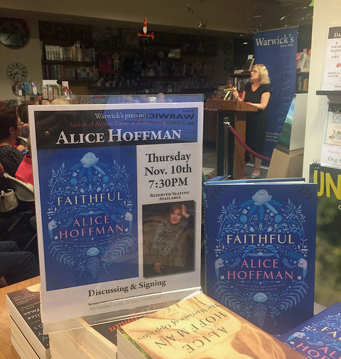 Here I am with my mom and daughter Stephanie at Warwick’s Books when Alice was here in my neck of the woods for the book tour of FAITHFUL. So, yeah, we’re in the front row…