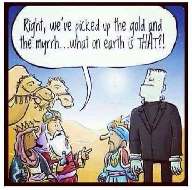 Jesus is called a child here, and the wise men from the East came to a house, not a stable. But all those details aside, they did bring very interesting gifts, none that I would call sweet and charming. They were strange gifts, and I admit when I was a little kid, I was flummoxed for a little while there regarding Frankenstein at the nativity.